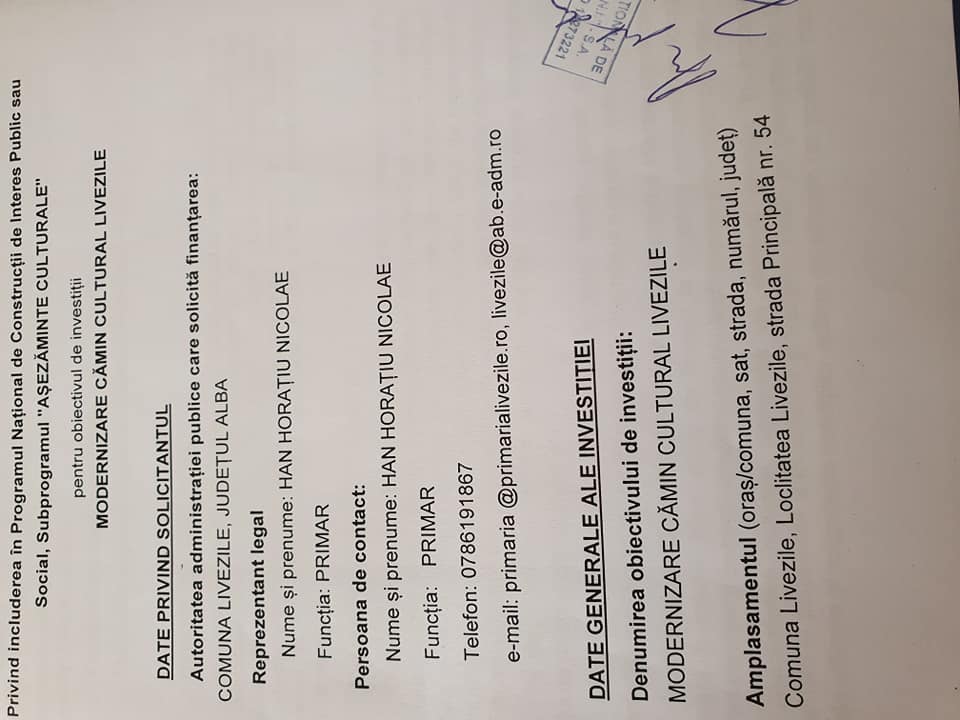 Am achizitionat un imobil in suprafata de 1430 mp in Livezile, urmand apoi proceduri pentru studii de fezabilitate, topografice, DALI, proiect tehnic etc., iar spre satisfactia tuturor am identificat sursa de finantare la CNI Bucuresti la inceputul lunii august 2020! Este vorba de o lucrare de 35 miliarde de lei vechi care va fi realizata prin FAPTE nu prin povesti!